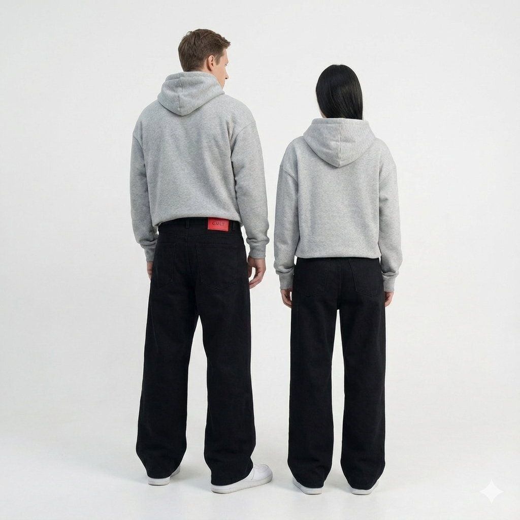 Crafted from premium Solid Black denim, these super baggy jeans deliver a relaxed silhouette with a modern edge. Designed for all-day comfort, the wide leg fit creates an effortless drape while the washed finish adds depth, character, and a vintage-inspired feel.